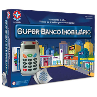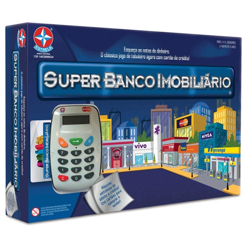 O Super Banco Imobiliário é o mais moderno jogo de compra e venda de propriedades! Todas as transações agora serão feitas pelo cartão de crédito e as ações das companhias do jogo são reais! O jogo é indicado para crianças acima de 8 anos.