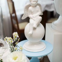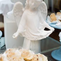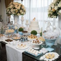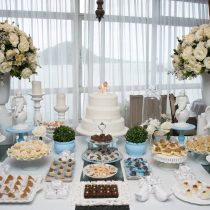 A mamãe quis comemorar o batizado dos pequenos em casa, para amigos e familiares! Não é porque é uma reunião pequena, que não pode ser encantadora.Assim, nosso projeto, MINI Mimos entrou em ação! 😉 Fizemos uma mesa clássica, branca e azul com flores e anjinhos para essa recepção super charmosa! O resultado foi muita delicadeza e harmonia… Amamos o resultado. Muito obrigada pelas fotos Paola Gama | Fotografia O bolo é claro, é da querida Beatriz Nazar, mamãe coruja